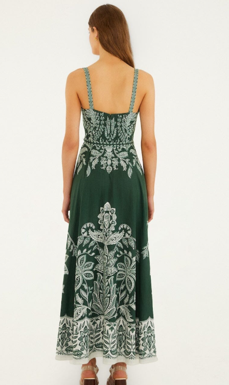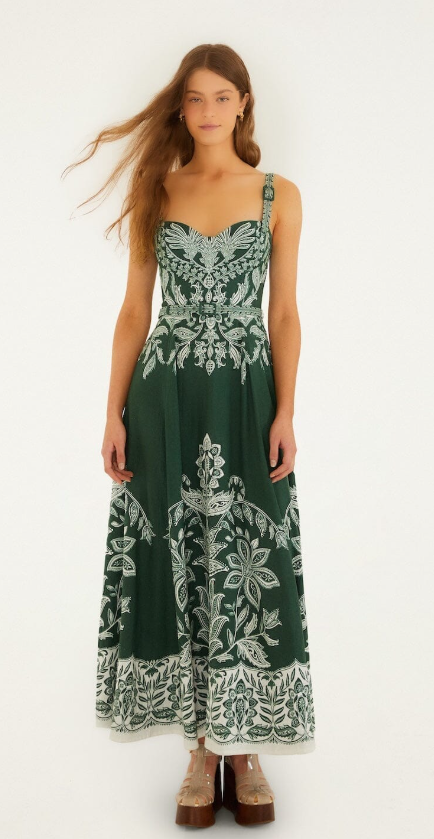 Embrace effortless elegance with the Dark Green Miranda Buckles Maxi Dress by FARM Rio. Crafted from breathable Euroflax™ Premium Linen, it features a flattering sweetheart neckline that softly frames the décolletage. The rich, deep green hue gently contrasts with playful buckle details along the straps, adding a touch of whimsy. Flowing with relaxed, graceful movement, this dress blends natural comfort with a spirited silhouette made for sunlit days and warm evenings.